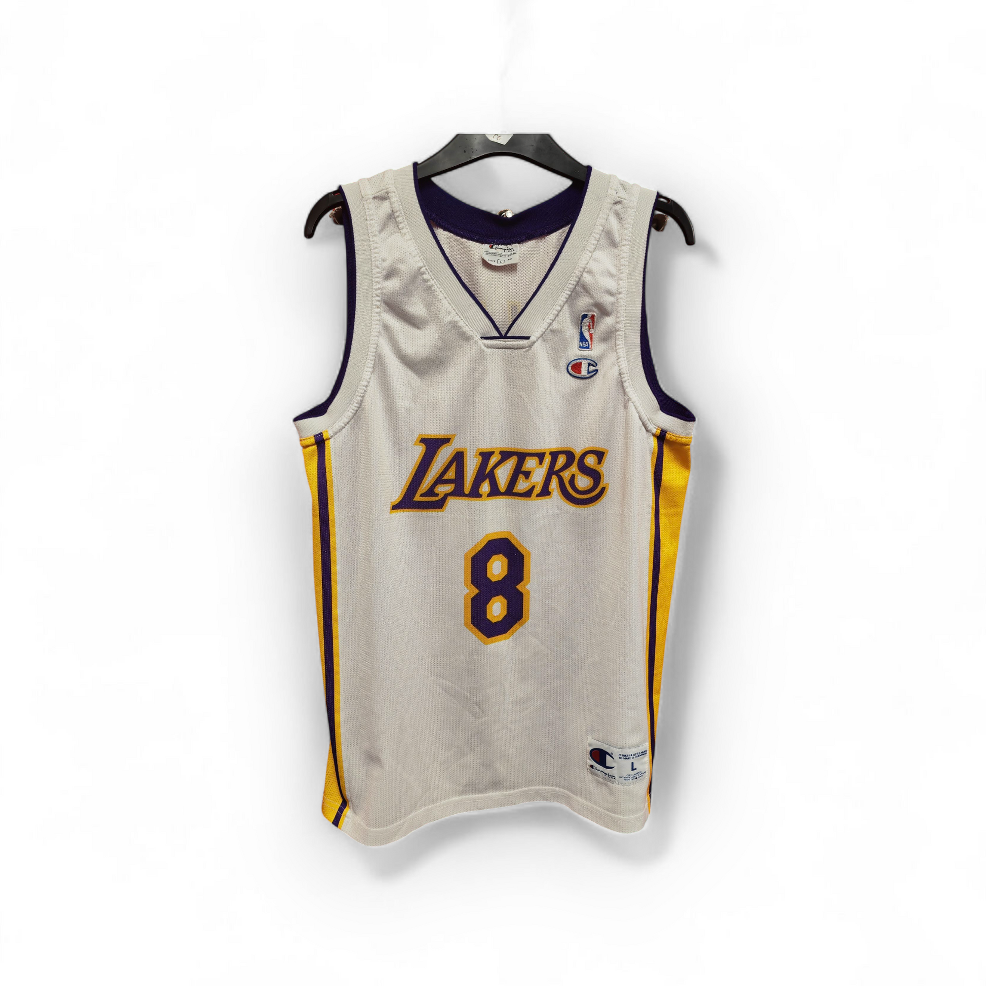 Champion Los Angeles Lakers NBA Jersey, #8 Bryant, White, Size Large