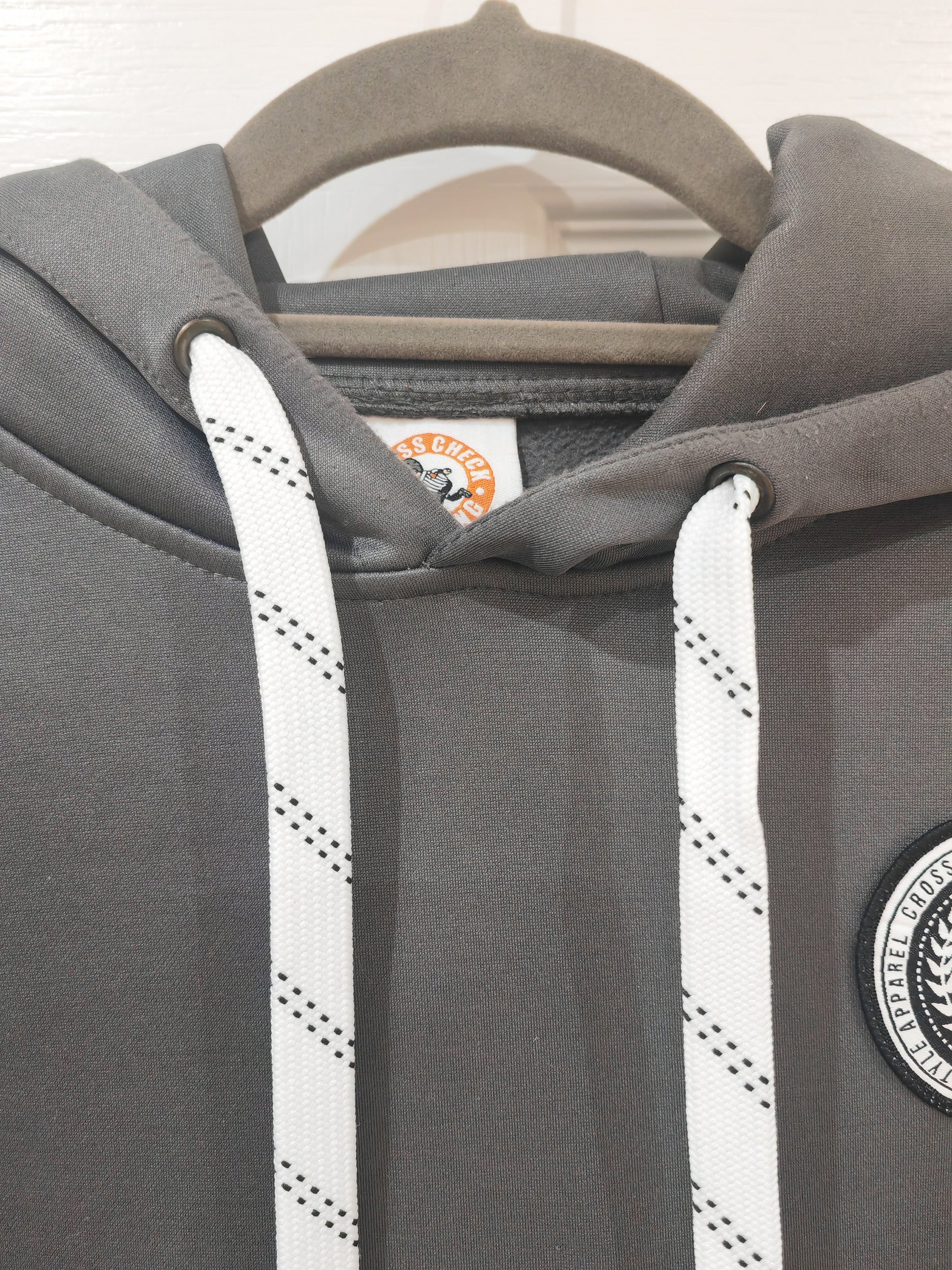 Cross Check Clothing Pullover Hoodie, Grey, Size Medium