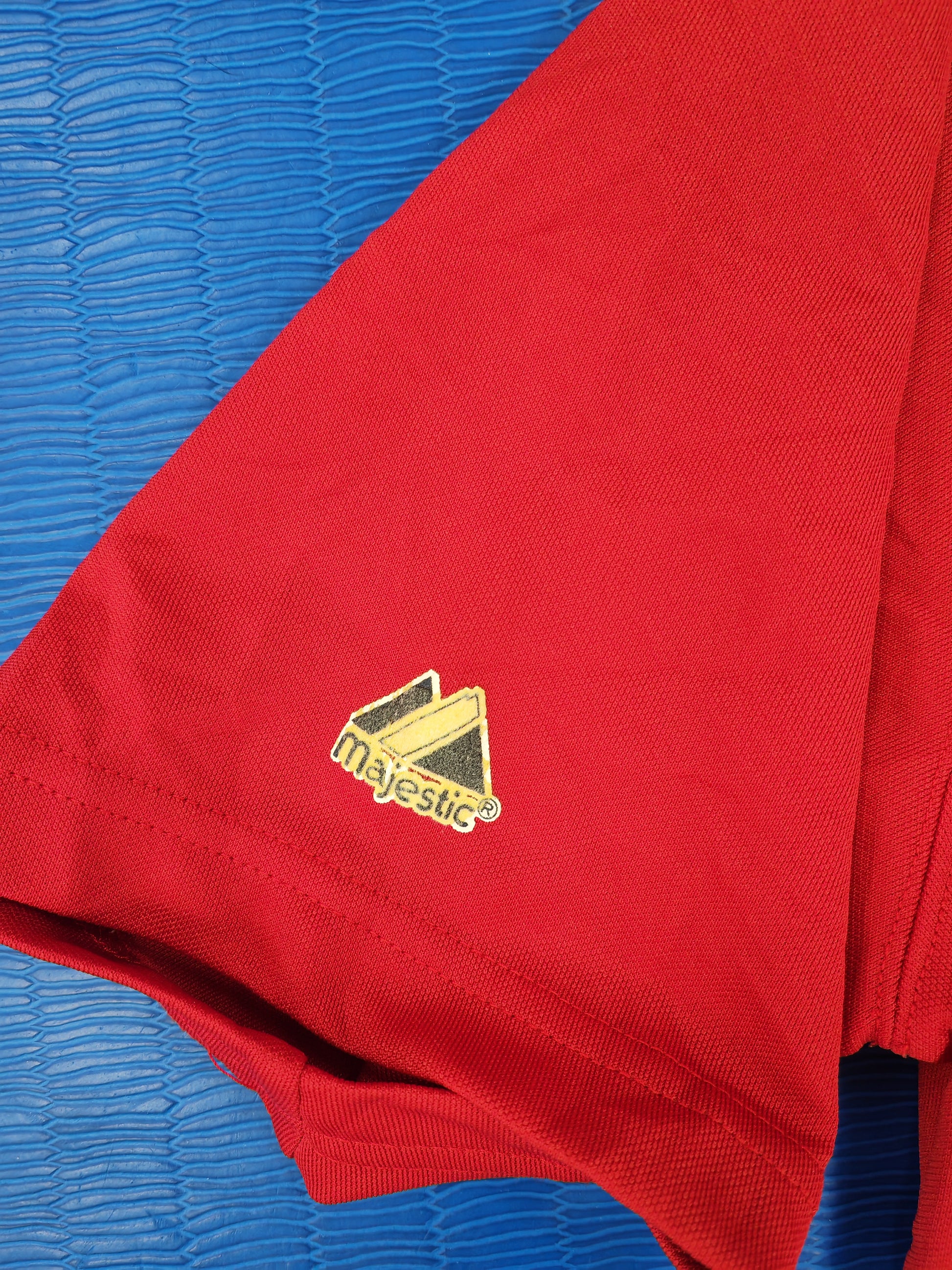 Very good condition. Bit of discolouring on the majestic logo on right sleeve but this isn't a major issue.