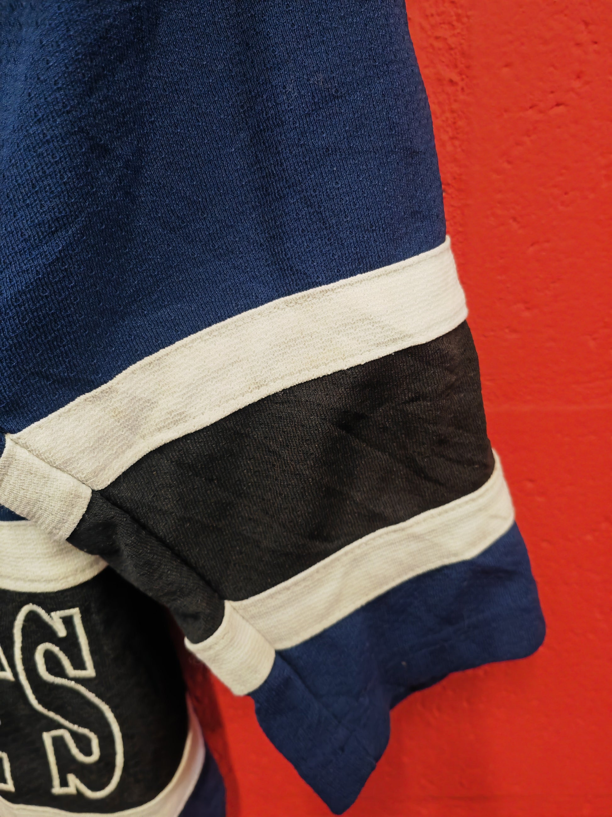 Very good to good condition. It looks like some of the Maple Leaf logo has been re glued on and not the most neat job. When on however the jersey will still look good.